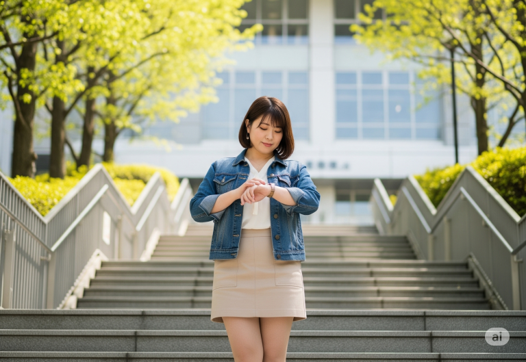 彼女のメールによると、薄紫のワンピースにデニムジャケット、ピンクのバッグで来るとのことでした。私も自分の服装を伝えます。
